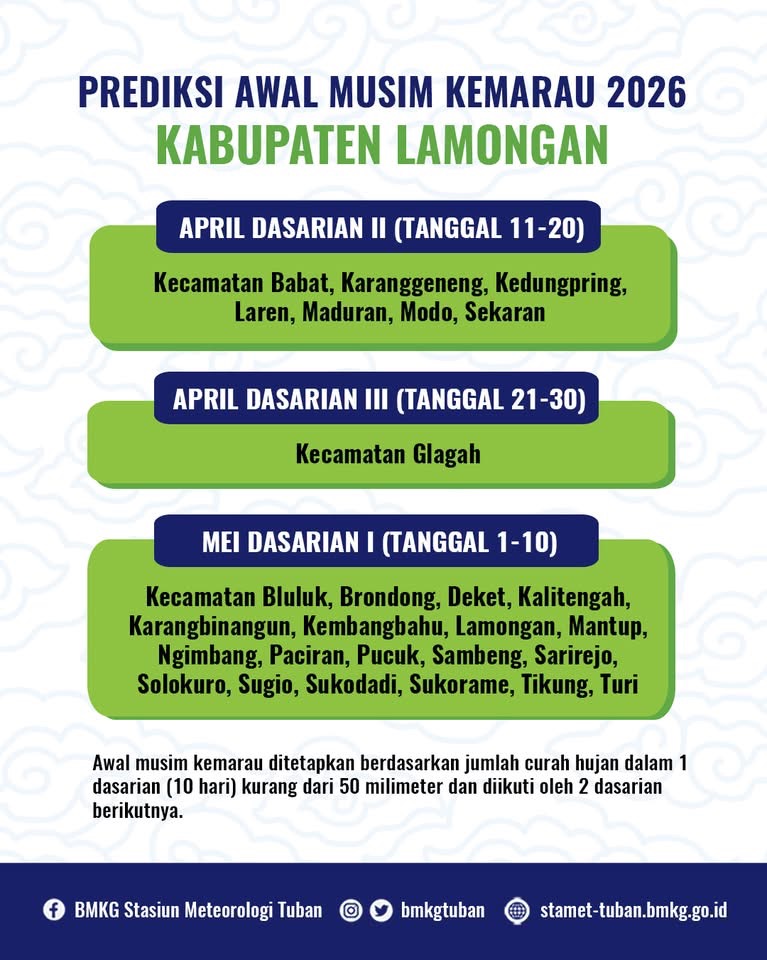 Peta Prediksi Awal Musim Kemarau Kabupaten Lamongan